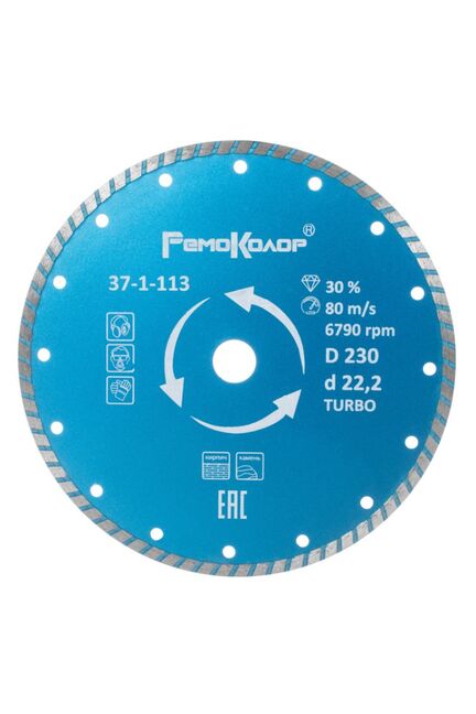 Диск алмазный отрезной РемоКолор Турбо 230х22,2мм универсальный в Солнечный