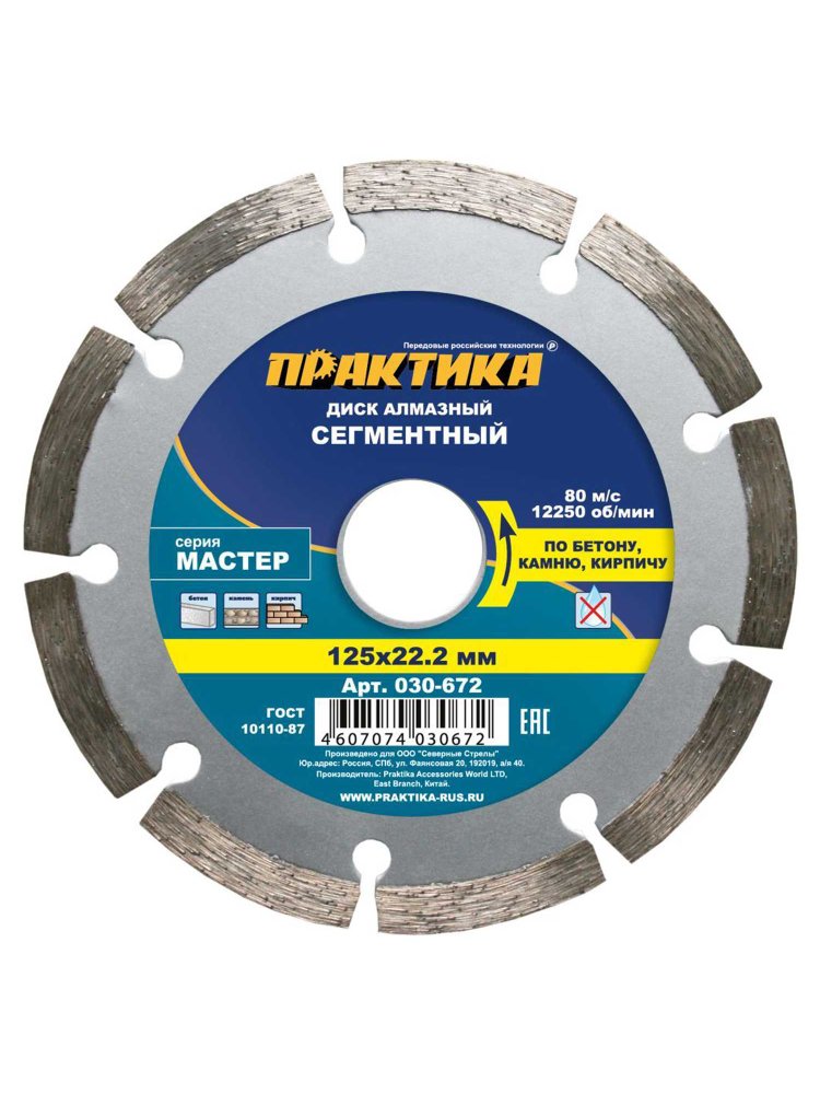 Диск алмазный сегментный ПРАКТИКА "Мастер" 125x22мм коробка