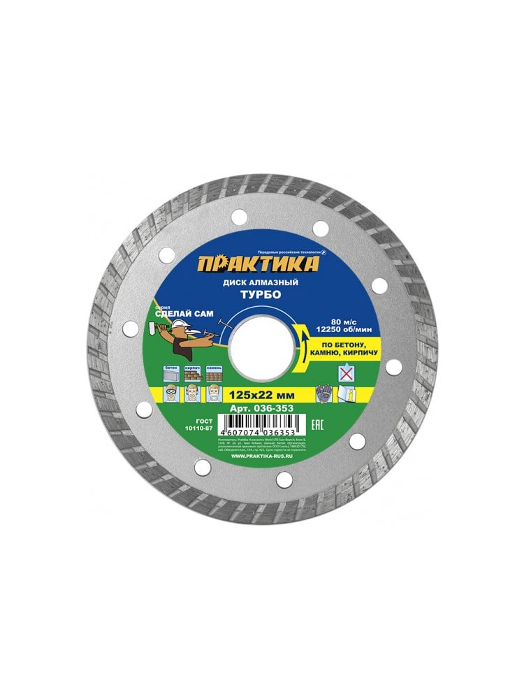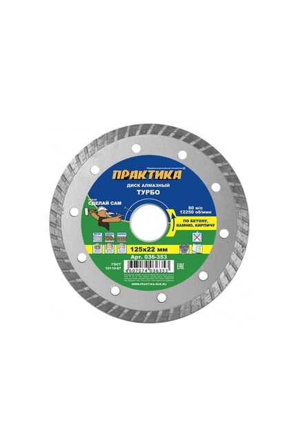 Диск алмазный турбированный ПРАКТИКА "Сделай сам" 125*22 мм в Солнечный