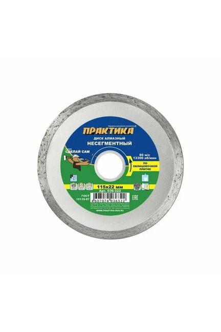 Диск алмазный несегментный ПРАКТИКА "Сделай Сам" 115х22 мм для керамической плитки в Солнечный