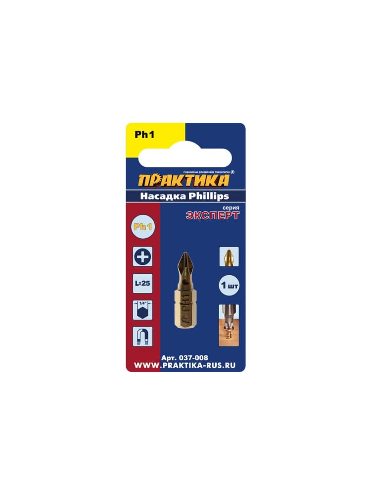 PH1, длина 25 мм, титановое покрытие Tin защищает от износа и коррозии, надежно подходит для работ с крепежом под крестовую отвертку.