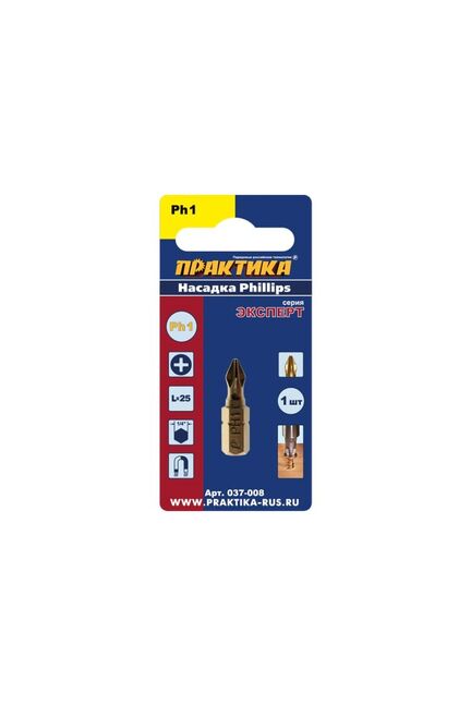 Бита отверточная ПРАКТИКА "Эксперт" PH-1*25 мм, Tin в Солнечный