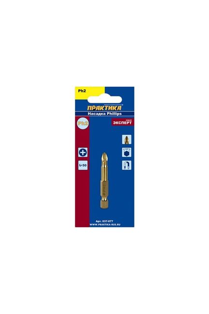 Бита отверточная ПРАКТИКА "Эксперт" PH-2 х 50 мм Tin в Солнечный