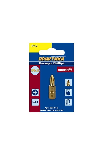 Бита отверточная ПРАКТИКА "Эксперт" PH-2*25 мм, Tin в Солнечный