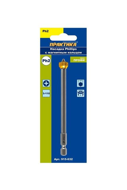 Бита отверточная ПРАКТИКА "Профи" PH-2*110 мм, с магнитным кольцом, 2 шт в Солнечный
