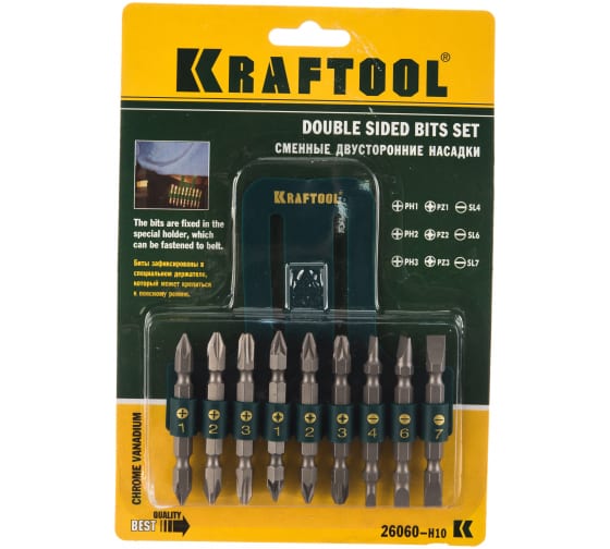 Набор бит KRAFTOOL двусторонние, 65мм, 9 предметов в Солнечный