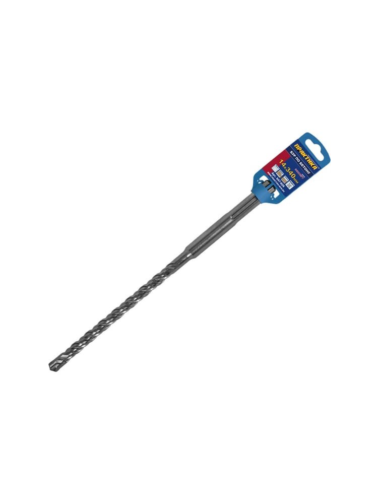 диаметр - 14 мм, тип хвостовика - SDS-Мах, общая длина - 340 мм, рабочая длина - 200 мм, количество граней - 4 Быстрый и точный бур SDS-MAX 14×200/340 мм для бетона с усиленной пластиной, повышенным ресурсом и эффективным отводом пыли.