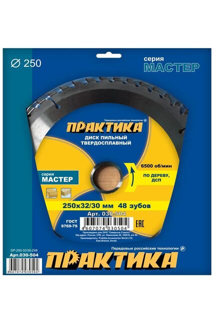 Диск пильный по дереву, ДСП ПРАКТИКА 250х32\30мм,48T в Солнечный