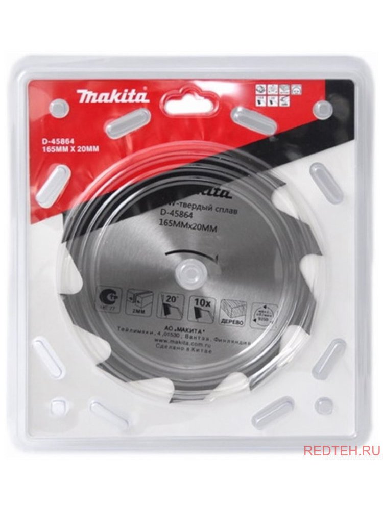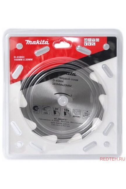 Твёрдосплавные пильные диски Makita. Для точной и чистой распиловки прессованных плит, ламинированной древесины или фанеры, мебельных плит, мягкой или твёрдой древесины. Точность и скорость пиления дерева — 165 мм, 10 износостойких зубьев, подходит для ручных и аккумуляторных циркулярных пил.