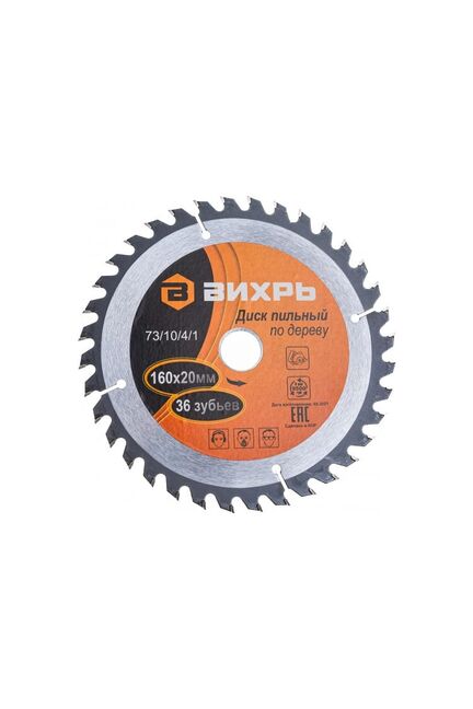 Диск пильный по дереву ВИХРЬ 160х20 мм,36 зубьев+кольцо 16/20 в Солнечный