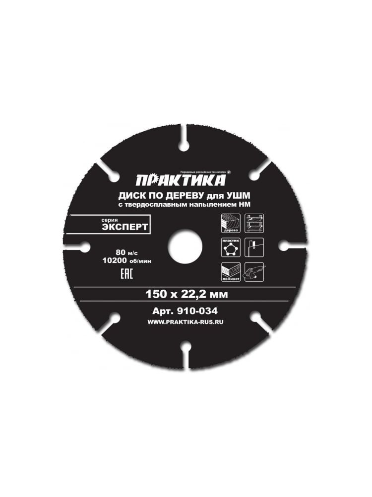 Диск по дереву с твердосплавным зерном ПРАКТИКА 150х22 мм для УШМ в Солнечный