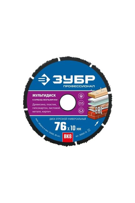 Диск по дереву с твердосплавным зерном ЗУБР 76*10мм для УШМ в Солнечный