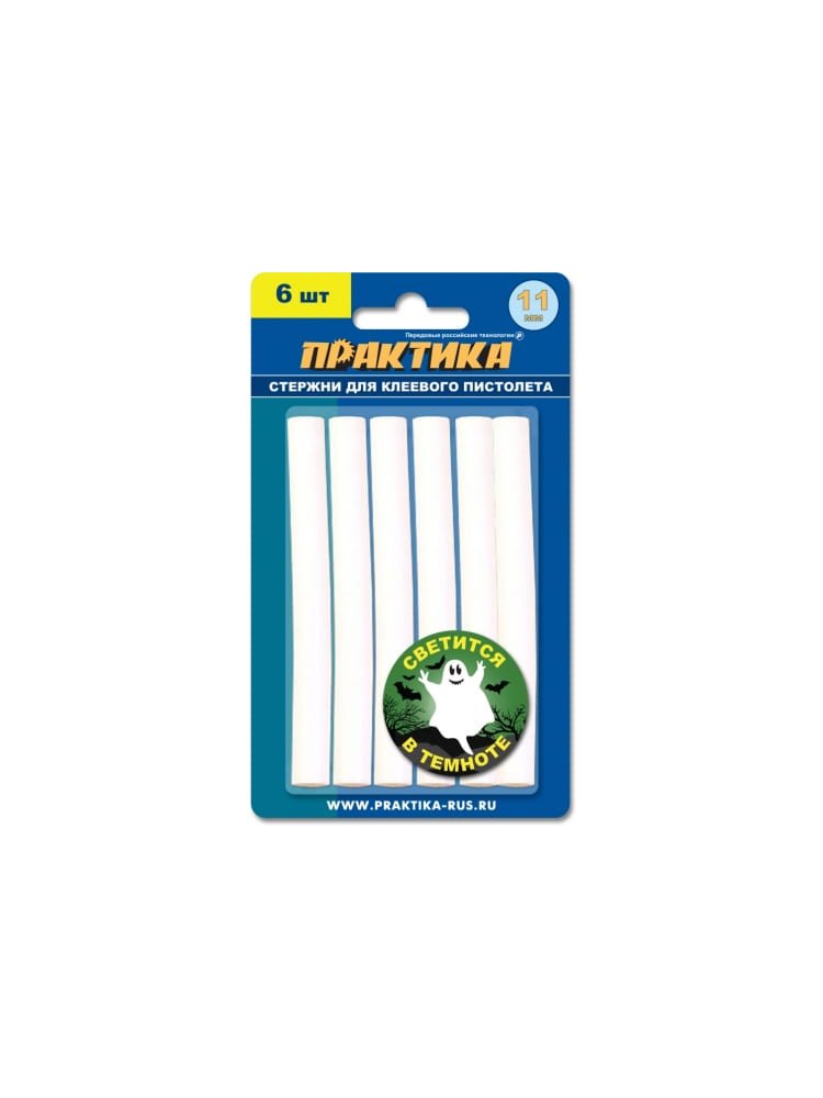 Клей для клеевого пистолета ПРАКТИКА белый, светящийся в темноте, 11x100 мм, 6шт