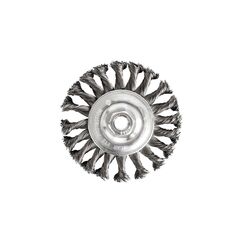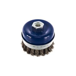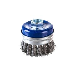 Кордщетки чашеобразные витые. Серия "Мастер". Кордщетка для угловых шлифмашин. Резьбовая посадка на шпиндель. Витая стальная проволока. Для грубой обработки дерева, снятия краски, шлифовки толстого металла, снятия ржавчины, окалины, обработки сварных швов. Кордщетка 75 мм, витая стальная проволока, крепление М14 — для быстрой и эффективной очистки металла, ржавчины, краски, окалины.