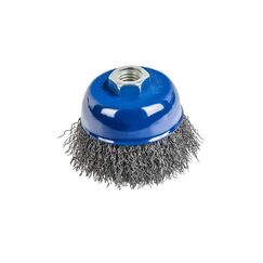 Кордщетки чашеобразные мягкие. Серия "Мастер". Кордщетка для угловых шлифмашин. Резьбовая посадка на шпиндель. Гофрированная стальная проволока. Для обработки дерева, снятия краски, шлифовки металла, снятия ржавчины, обработки сварных швов. Мягкая чашеобразная кордщетка 100 мм для УШМ — отлично очищает металл от ржавчины и краски без повреждений, простая  установка и долговечное использование.