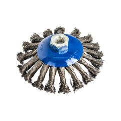 Кордщетки чашеобразные витые. Серия "Мастер". Кордщетка для угловых шлифмашин. Резьбовая посадка на шпиндель. Витая стальная проволока. Для грубой обработки дерева, снятия краски, шлифовки толстого металла, снятия ржавчины, окалины, обработки сварных швов. Витая кордщетка 100 мм для УШМ М14: быстрое и эффективное удаление ржавчины и краски, долговечность и удобство для металлических поверхностей.