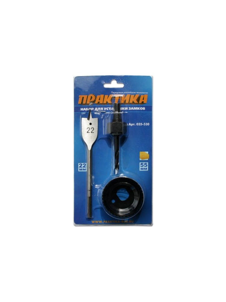 Набор для установки замков ПРАКТИКА коронка 55х20 мм, перовое сверло 22 мм