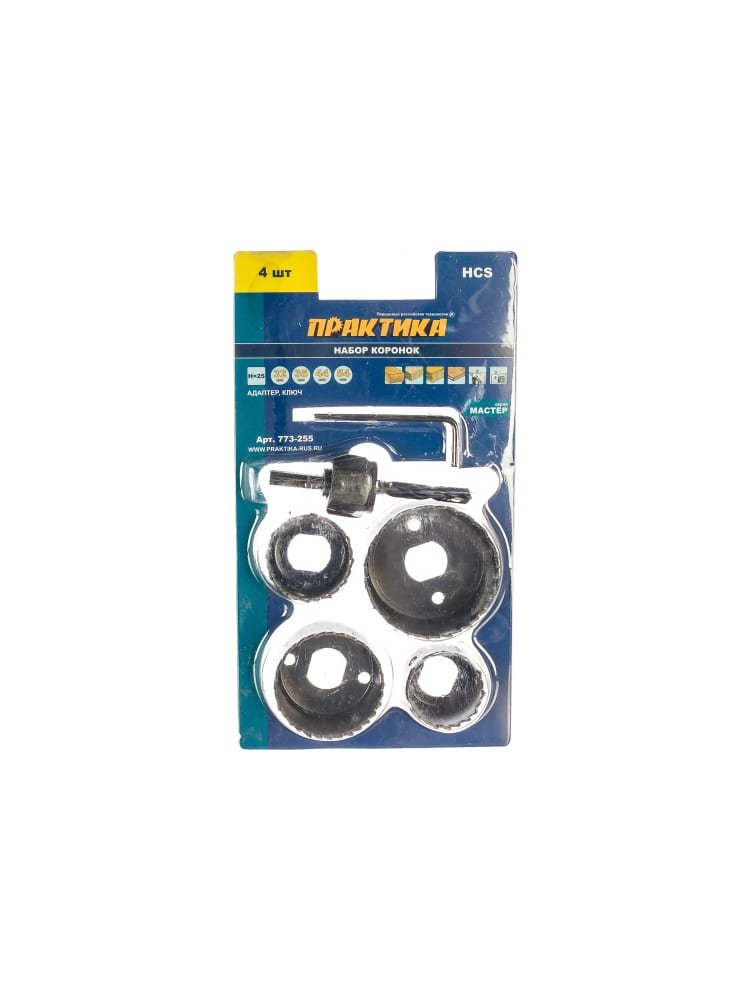 Набор HCS коронок ПРАКТИКА 4 шт 32, 35, 44, 54 мм + адаптер в Солнечный