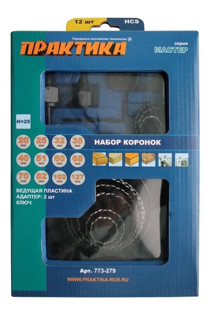Набор HCS коронок ПРАКТИКА по дереву, 12шт в Солнечный