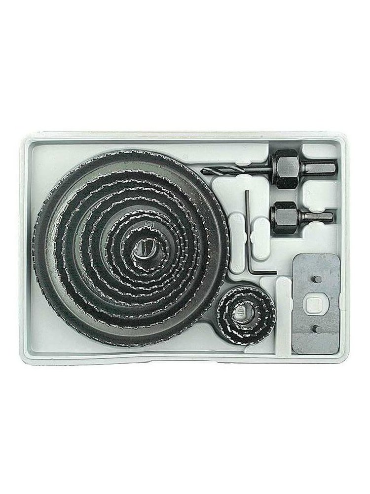 Идеальный набор для точного и быстрого сверления отверстий в древесине, фанере и ДСП при монтаже, строительстве, ремонте и отделочных работах. В комплекте 12 коронок диаметром от 19 до 127 мм, переходные втулки, центрирующее сверло и ключ — решение большинства задач по созданию чистых круглых вырезов под розетки, вентиляцию, замки и другие элементы.