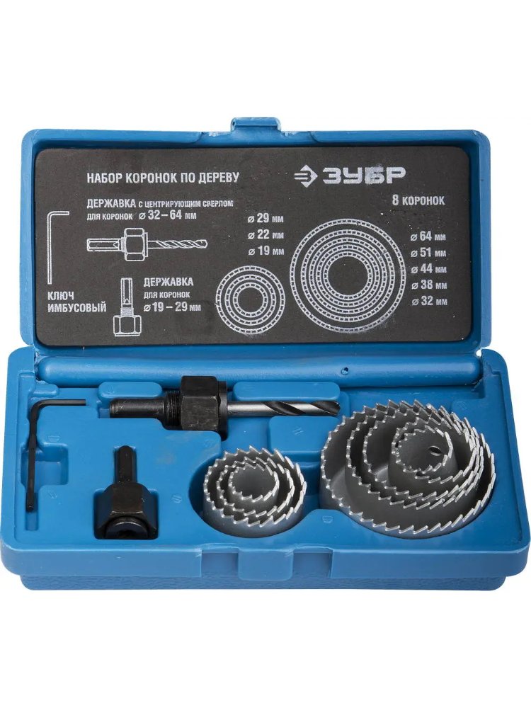 Набор коронок по дереву ЗУБР, 8 предметов