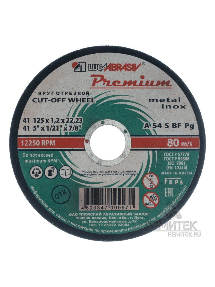 Круг отрезной по металлу и нерж. ЛУГА Premium 125*1,2*22мм