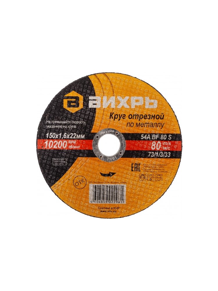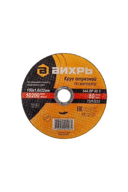 Круг отрезной по металлу ВИХРЬ 150х1,6х22 мм в Солнечный