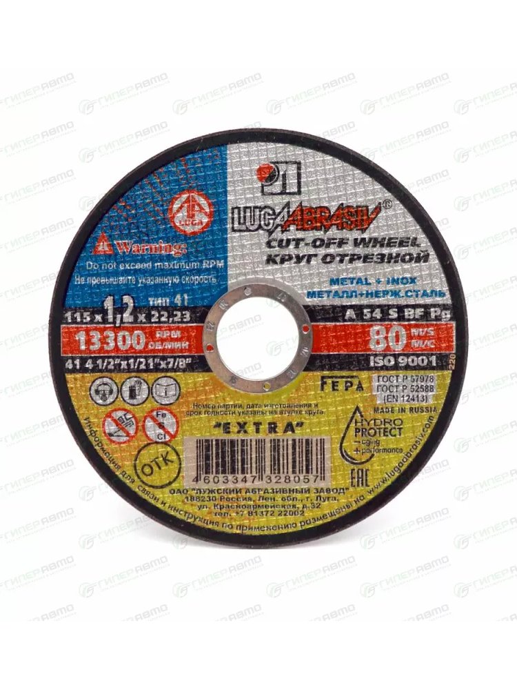 Круг отрезной по металлу и нерж. ЛУГА Extra 115*1,0*22мм в Солнечный