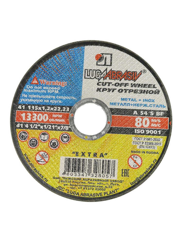Круг отрезной по металлу и нерж. ЛУГА Extra 115*1,2*22мм