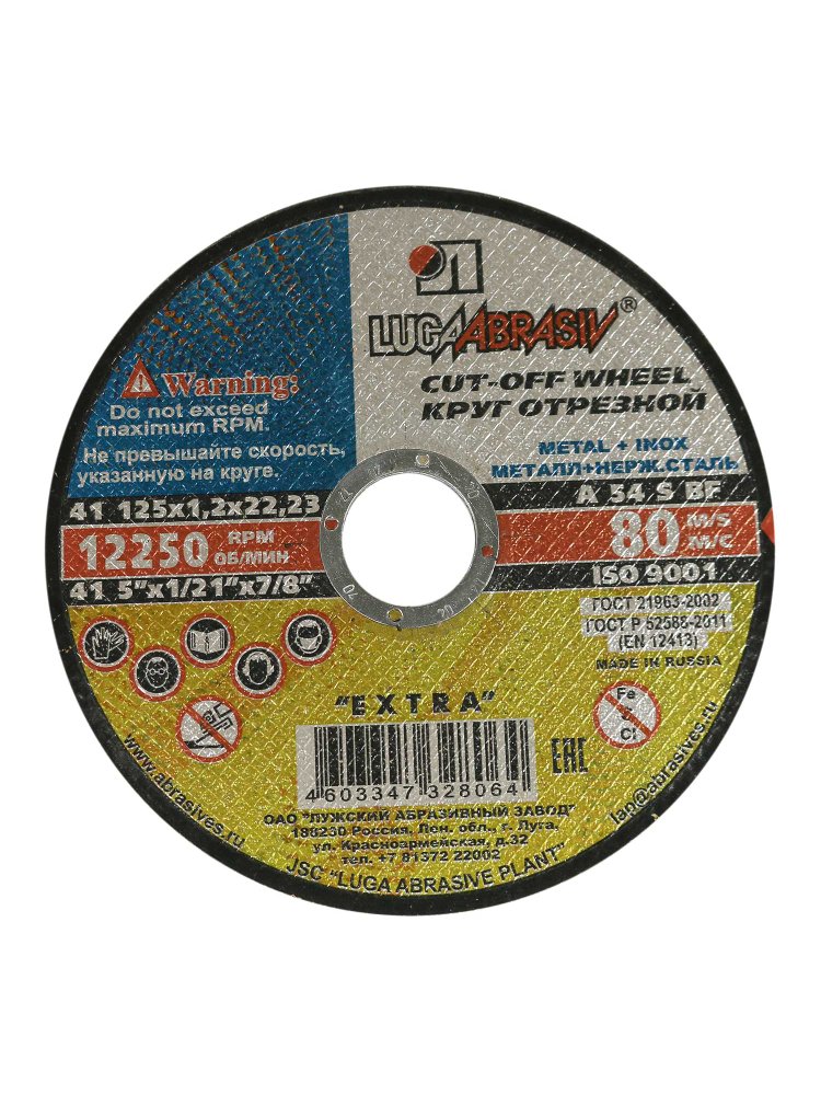 Круг отрезной по металлу и нерж. ЛУГА Extra 125*1,2*22мм