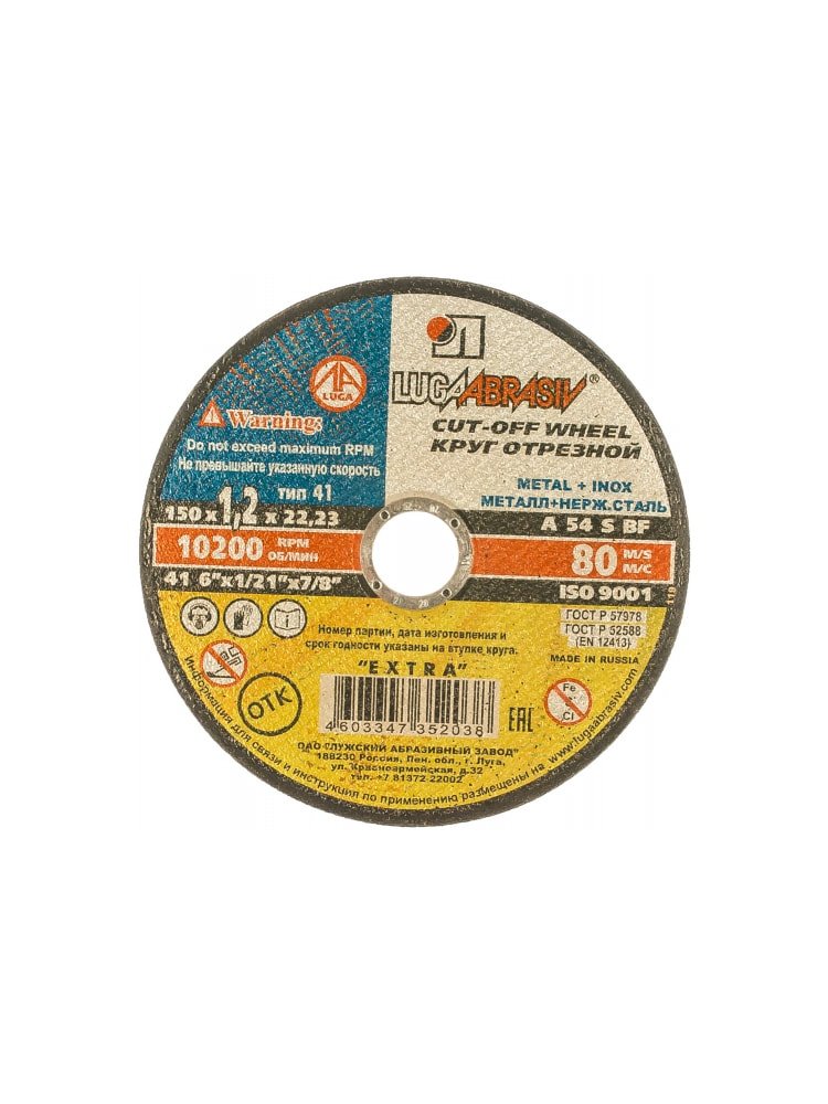 Круг отрезной по металлу и нерж. ЛУГА Extra 150*1,2*22мм