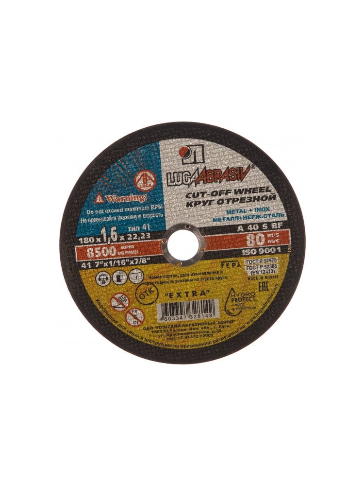 Круг отрезной по металлу и нерж. ЛУГА Extra180*1,6*22мм