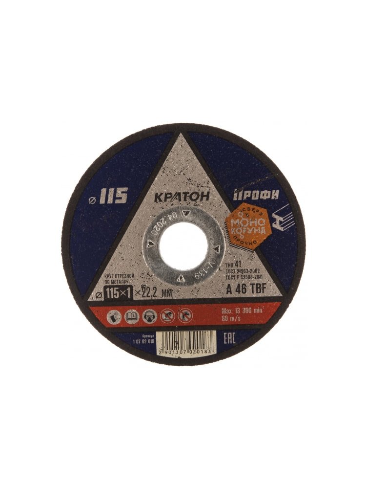 Круг отрезной по металлу КРАТОН "Профи" 115*0,8*22.2мм