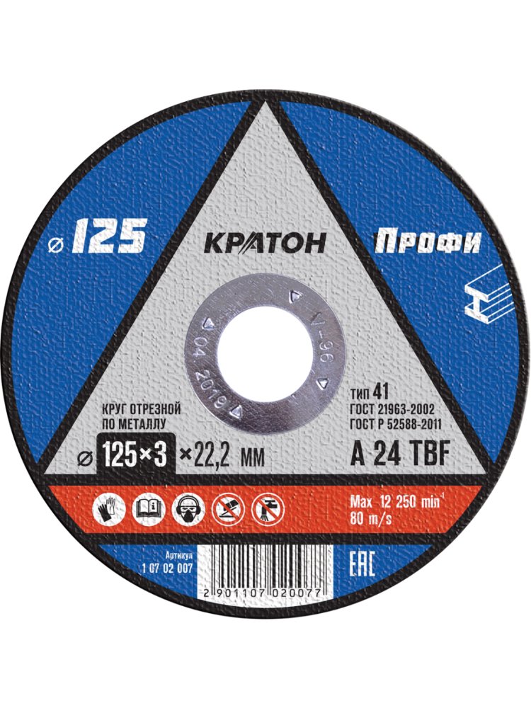 Круг отрезной по металлу КРАТОН "Профи" 125*3.0*22.2мм
