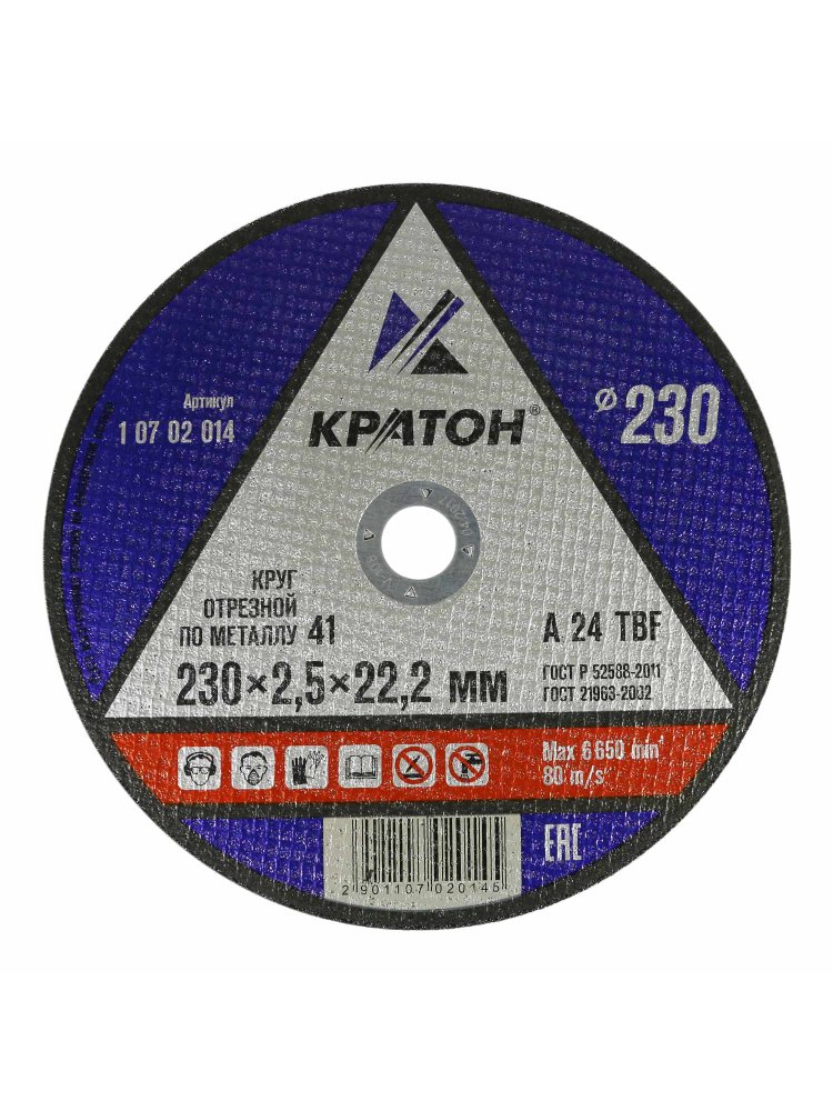 Круг отрезной по металлу КРАТОН "Профи" 230*2.5*22.2мм