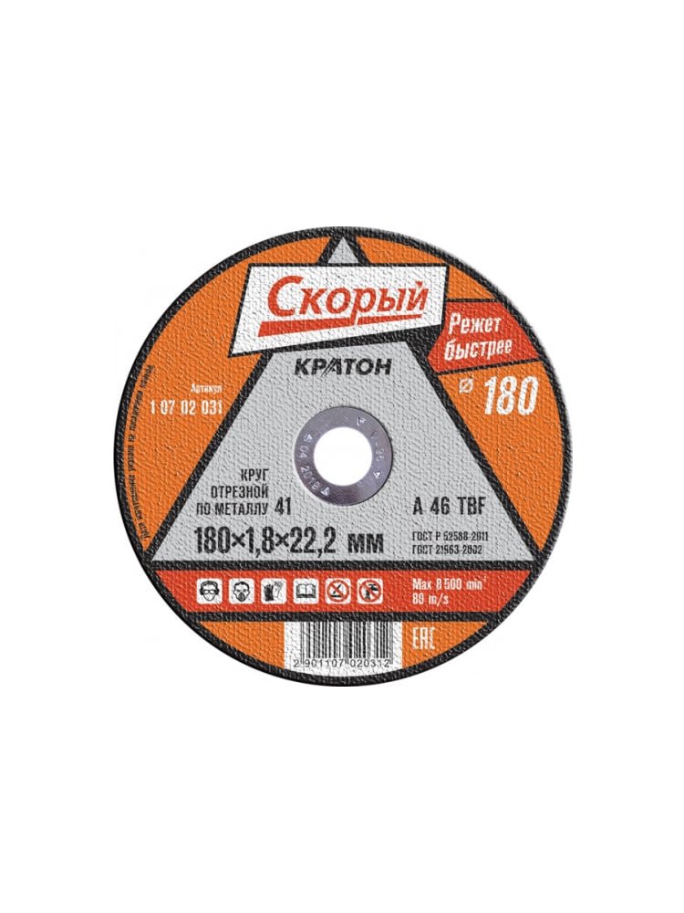 Круг отрезной по металлу КРАТОН "Скорый" 180*1,8*22,2 мм