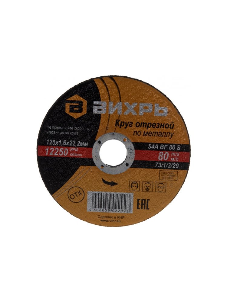 Круг отрезной по металлу ВИХРЬ 125х1,6х22 мм