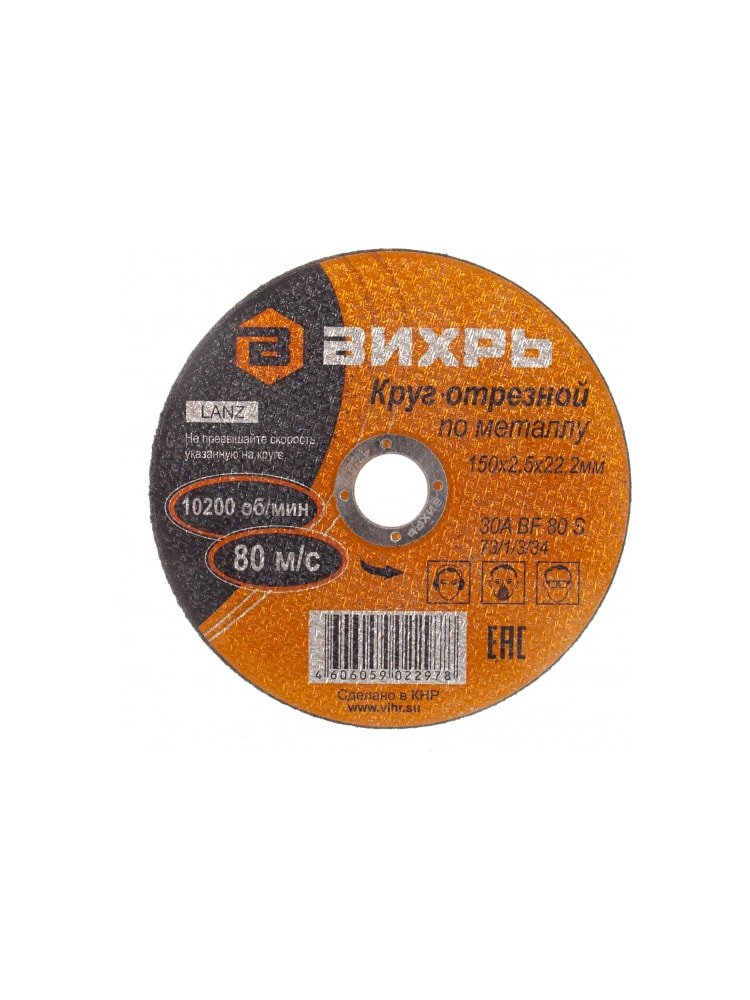 Круг отрезной по металлу ВИХРЬ 150х2,5х22 мм