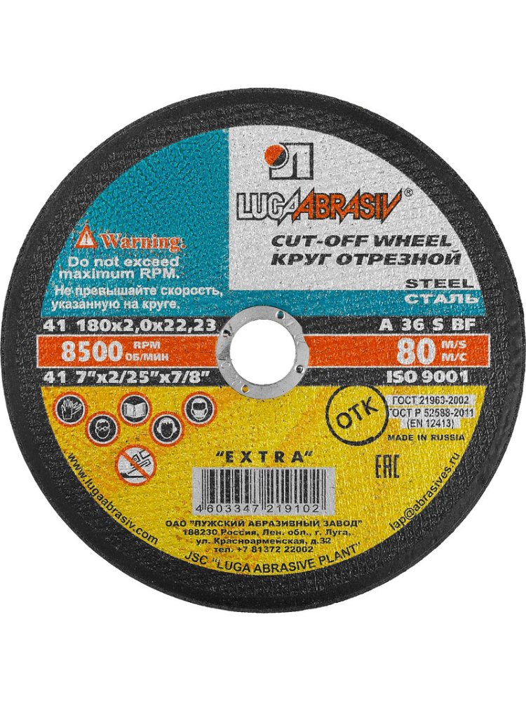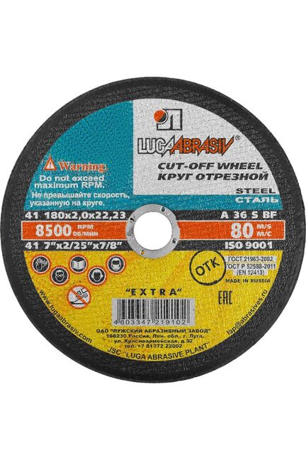 Круг отрезной по металлу и нерж. ЛУГА Extra 180*2,0*22мм в Солнечный