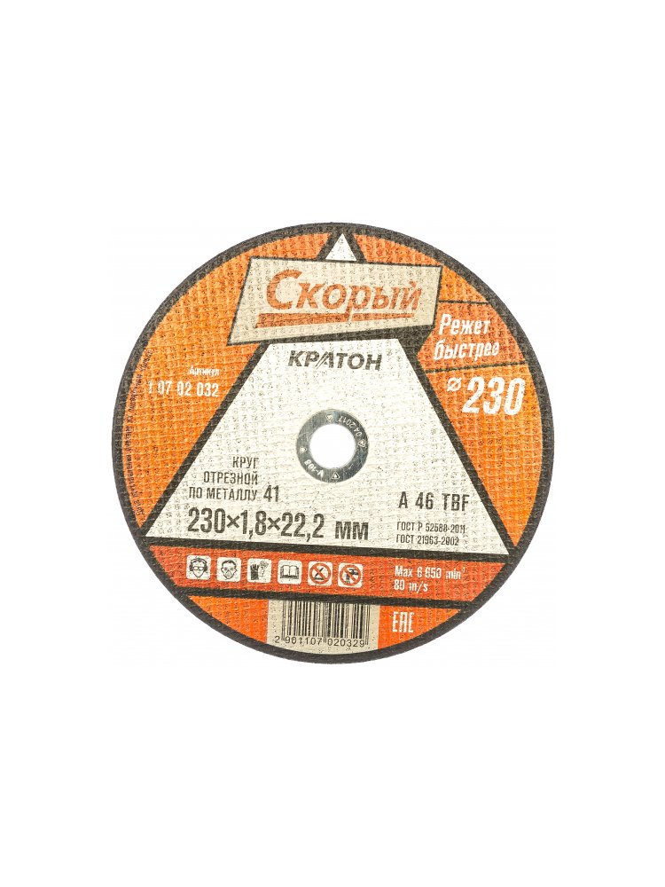 Круг отрезной по металлу КРАТОН "Скорый" 230*1,8*22,2 мм