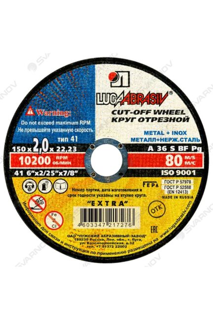 Круг отрезной по металлу и нерж. ЛУГА Extra 150*2,0*22мм в Солнечный