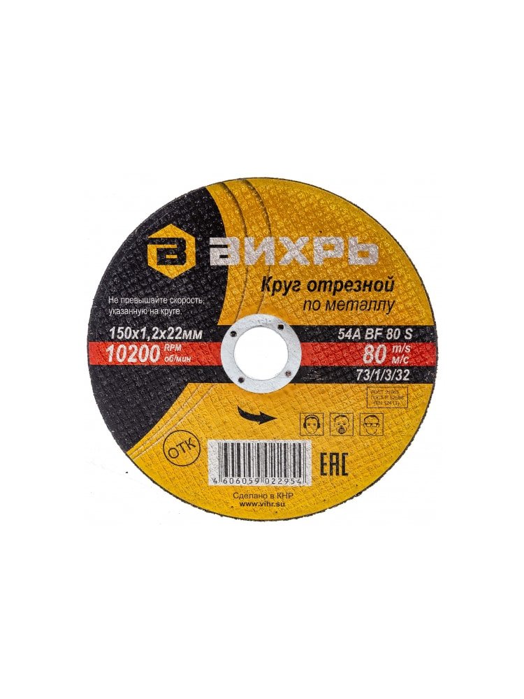 Круг отрезной по металлу ВИХРЬ 150х1,2х22 мм