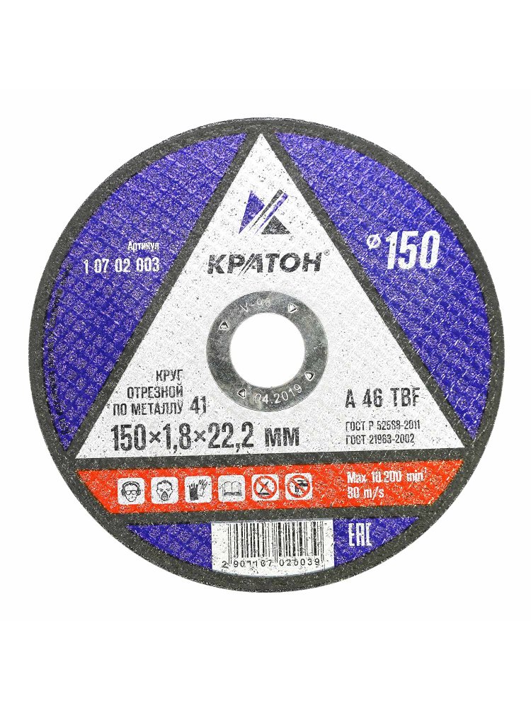 Круг отрезной по металлу КРАТОН "Профи" 150*1.8*22.2мм