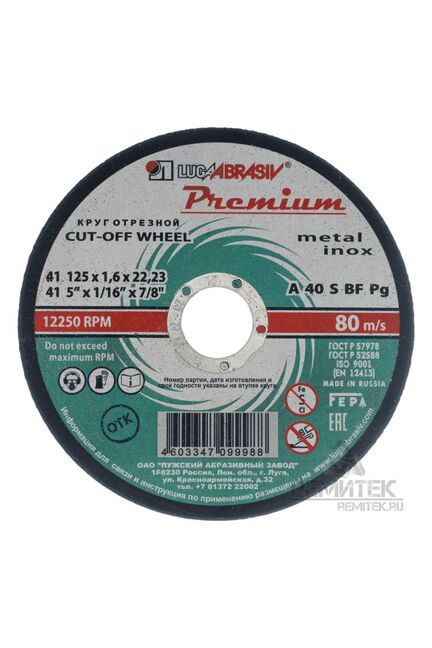 Круг отрезной по металлу и нерж. ЛУГА Premium 125*1,6*22мм в Солнечный