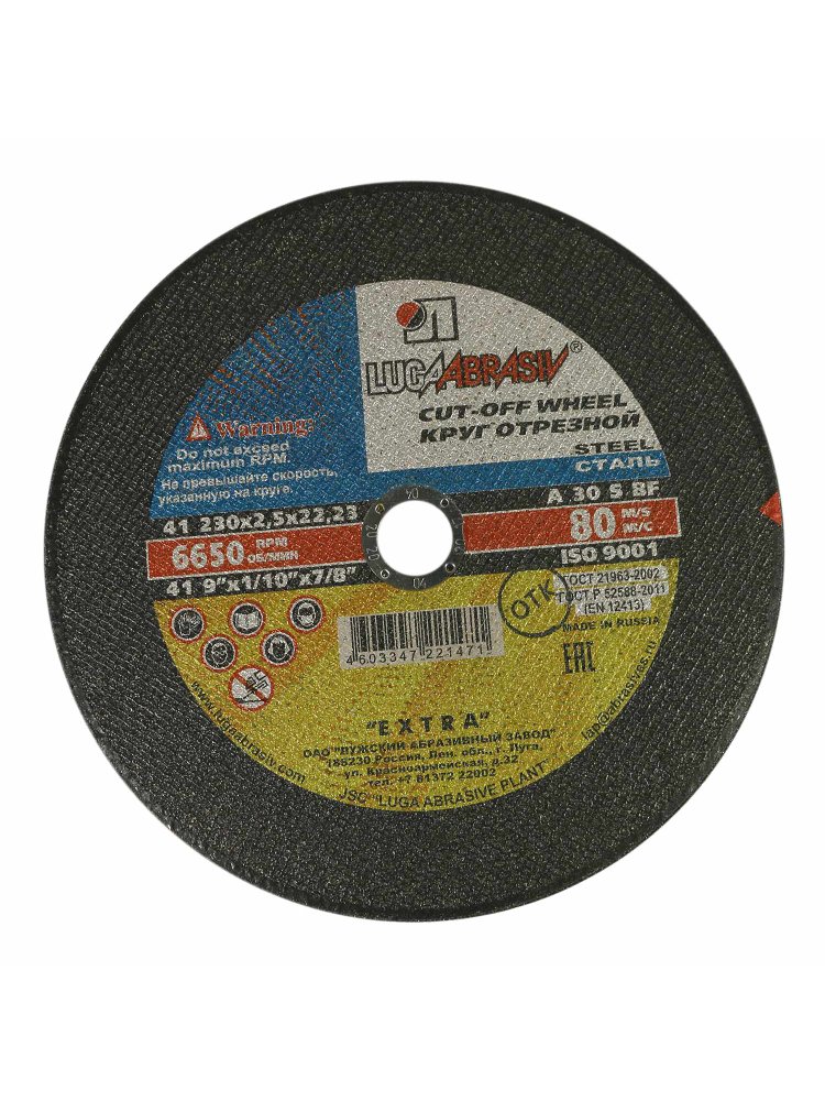 Для по металлуа прямой Круг отрезной ЛУГА Extra 230*2,5*22 мм для резки металла и нержавеющей стали. Высокая прочность, чистый рез, совместимость с УШМ.