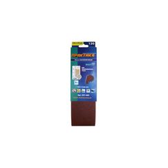 зернистость - 100, длина - 457 мм, ширина - 75 мм, назначения - универсальная, основа - тканевая, количество - 3 шт Идеальна для дерева, металла и пластика, устойчива к износу. Зернистость P100, размер 75×457 мм, в комплекте 3 ленты для гладкой обработки.