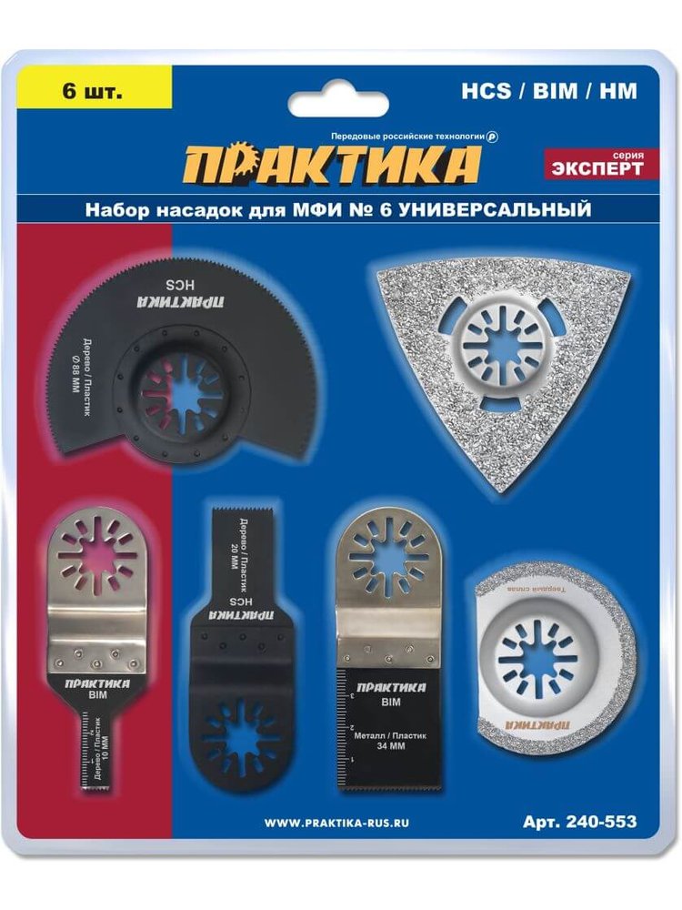 Наборы насадок для МФИ. Серии "Профи" и "Эксперт". Набор из 6 многофункциональных насадок: резка, зачистка и шлифовка по дереву, металлу и пластику, совместимы с большинством МФИ.