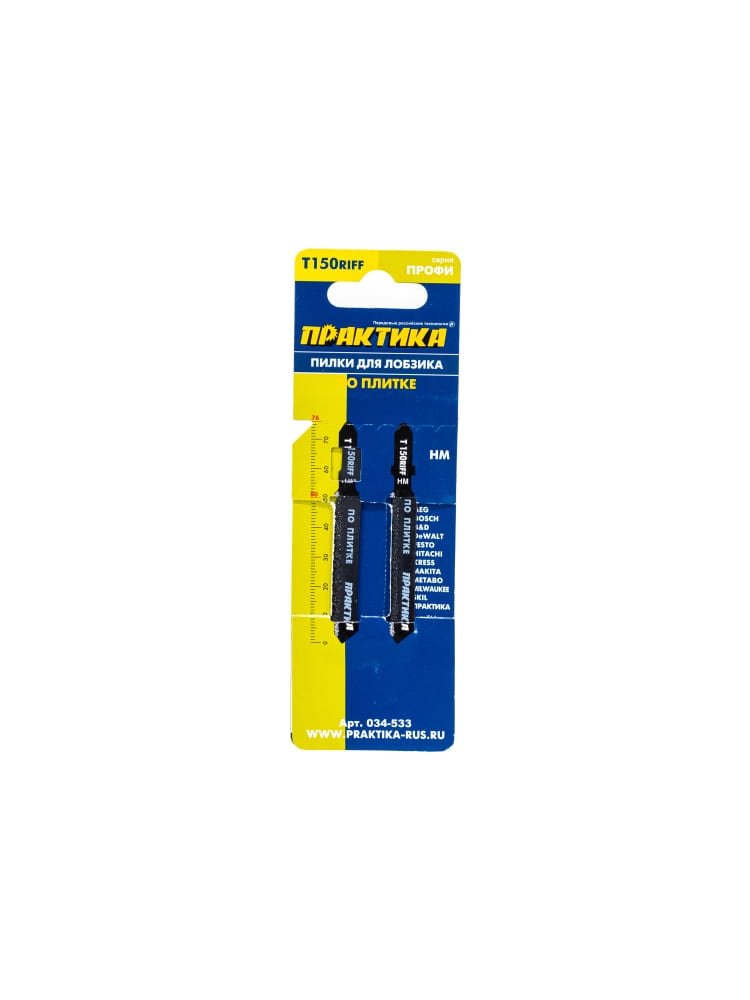 Пилки для лобзика по плитке ПРАКТИКА тип T150RIFF 76х50 мм, чистый рез, HM, 2шт