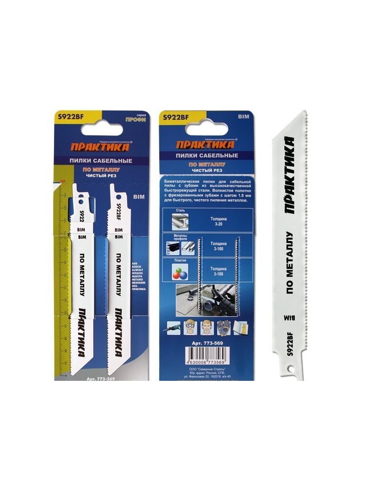 Пилки для лезвийной пилы ПРАКТИКА S922BF BIM,по металлу. 1,8*1,5мм 2шт в Солнечный