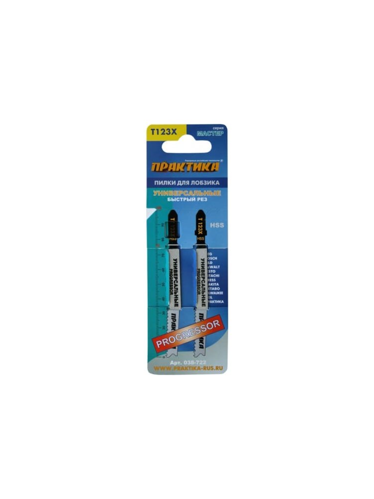 Пилки для лобзика универсальные ПРАКТИКА Прогрессор T123X 100*75 мм, грубый рез, HSS, 2 шт